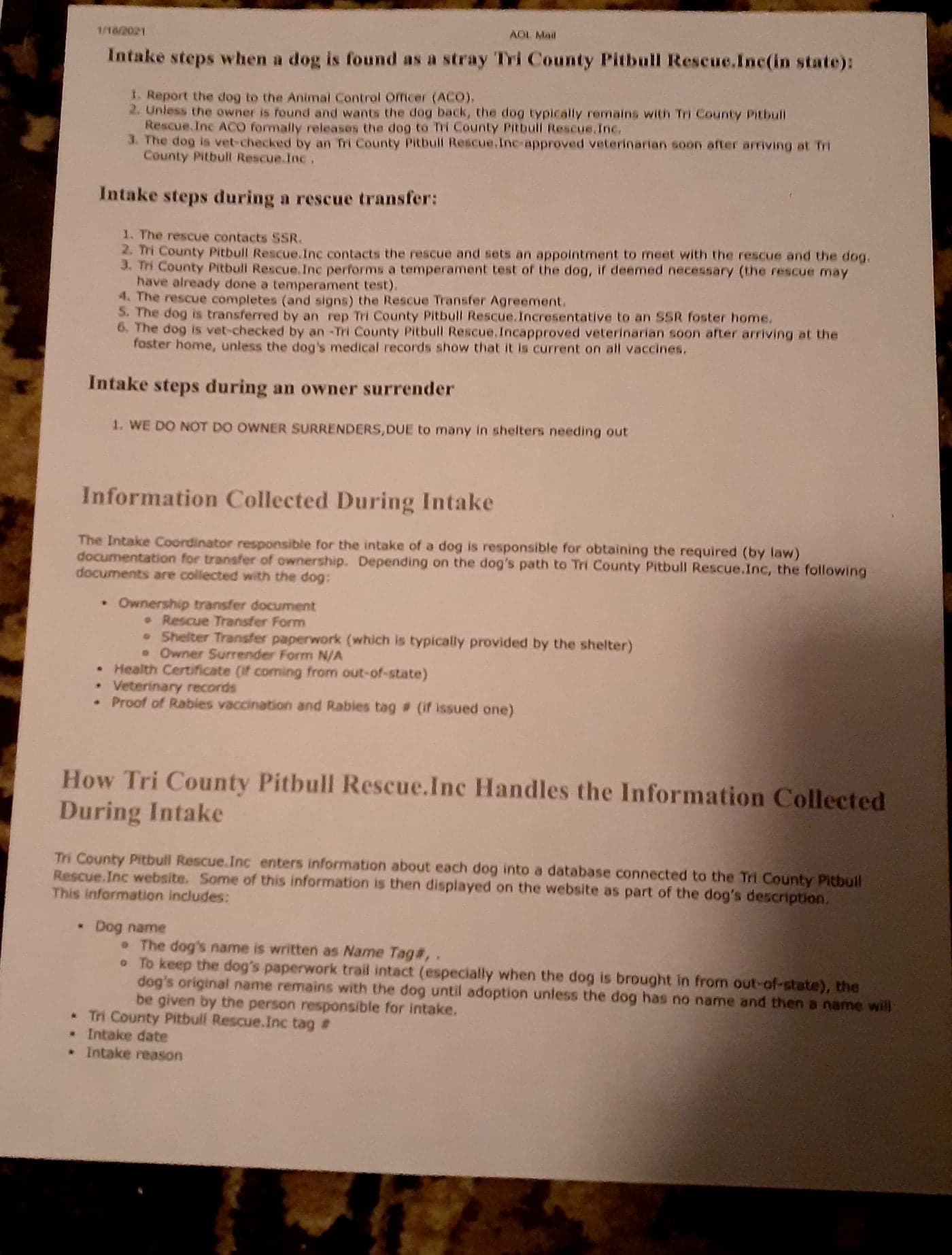Agency Name: TriCounty Pitbull Rescue, Incorporated